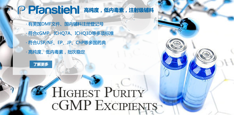 “熱烈祝賀Pfanstiehl的注射級甘氨酸Glycine(G-140)喜獲CDE登記號F20250000403, 這是Pfanstiehl產品獲得的第18個CDE登記號!”甘氨酸在醫藥輔料制劑中應用廣泛,, 可作為緩沖劑,增溶劑,穩定劑等,具有諸多優勢。Pfanstiehl秉承一貫高品質理念,為滿足全球生物制藥行業對于高品質甘氨酸的需求,隆重推出的注射級甘氨酸Glycine (G-140), 具有超高純度,超低內毒素,超低金屬殘留的特點,單獨檢測29種金屬離子,并且新增DNA,RNA,DNA酶,RNA酶和脂肪酶,亞硝酸鹽等多項質量指標的檢測,符合多國藥典規定(USP, EP, BP, JPE, ChP),可用于生物治療性藥物和疫苗的生產。產品信息:· 產品名稱:Glycine, High Purity, Low Endotoxin, Low Metals, USP, EP, BP, JPE, ChP (G-140)· 中文名稱:甘氨酸· 分子式:C2H5NO2· 分子量:75.07 g / mol· CAS號:56-40-6· 產品貨號:G-140產品特點: · 超高純度,超低內毒素,超低微生物含量,超低金屬雜質殘留· 質量指標新增DNA,RNA,DNA酶,RNA酶,脂肪酶和亞硝酸鹽檢測· 符合多國藥典:USP, EP, BP, JPE, ChP· 符合ICH Q3D標準· 符合GMP標準· 已獲DMF和CDE登記號 產品應用:· 緩沖劑· 穩定劑· 增溶劑如果您對Pfanstiehl注射級別Glycine G-140感興趣,歡迎聯系Pfanstiehl 中國區代理商北京西美杰科技有限公司獲得如下詳細的產品概況說明文件和測試樣品。Pfanstiehl Inc.最新產品系列如下,歡迎聯系北京西美杰科技有限公司獲取100g裝免費樣品。北京西美杰科技有限公司為Pfanstiehl中國代理,為客戶提供完善的技術支持與售后服務。歡迎撥打西美杰客服電話400-050-4006或者登陸網站www_xmjsci_com.52jiaji.com了解更多信息。 更多>